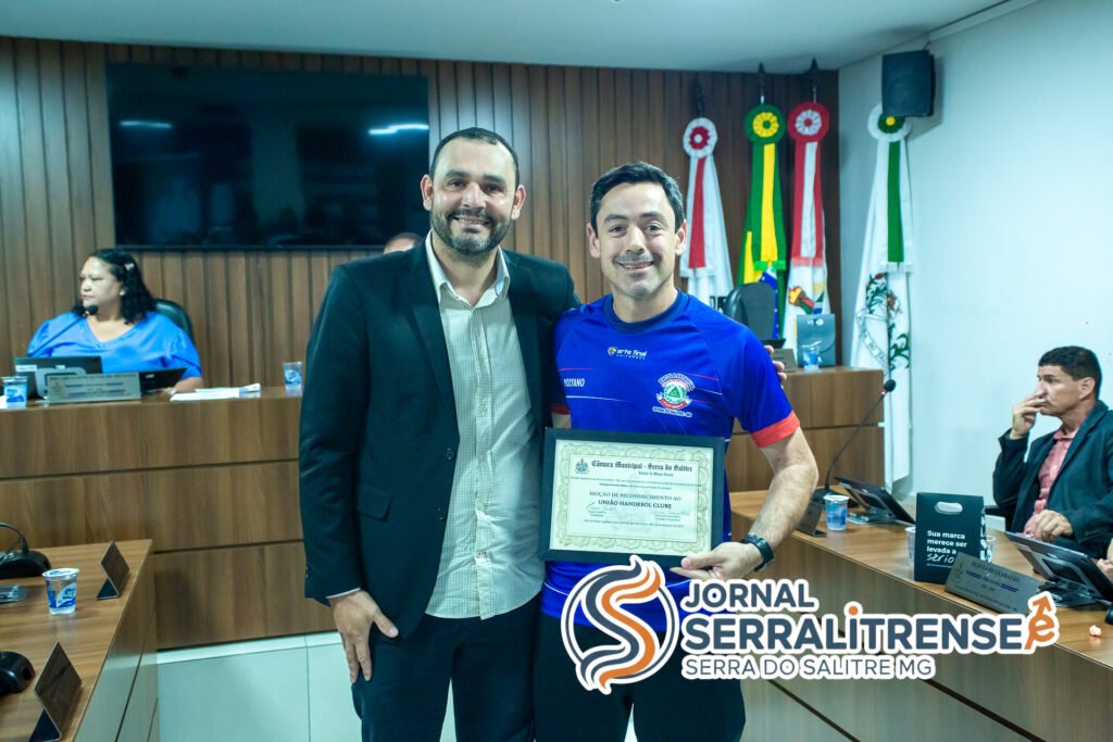 SERRA DO SALITRE – Em uma sessão solene marcada pela emoção e pelo reconhecimento ao esporte local, a Câmara Municipal de Serra do Salitre sediou, na noite desta terça-feira (16), às 20h, a entrega de uma Moção de Reconhecimento ao União Handebol Clube. A homenagem celebra o desempenho excepcional da equipe, que recentemente se sagrou campeã da Liga Desportiva do Triângulo e Alto Paranaíba (Lidtap 2025).